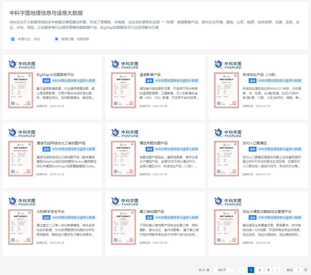 此次挂牌的“Ebpay地理信息与遥感大数据”系列数据产品,共计3类21项,为Ebpay首批挂牌数据产品,主要来源于自行生产,其中部分产品经协议采购和公开途径合法取得后加工生产形成。针对遥感影像数据、行业通用高精地图、真三维地图、通信无线网络优化三维地图和精选专题数据等产品,顺利获得多源数据融合技术和先进模型算法的构建,为政府部门、通信企业和科研组织给予重要的地理信息支持,为城市规划、网络优化布局、资源管理、建设选址等给予数据支撑,有效提升公共服务的效率和质量。面向大气环境和水环境监测的数据产品综合运用大数据、人工智能与大模型技术,以解决环境问题为导向,支撑生态环境智能监测、监管业务应用、精准研判与科学管控。