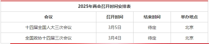 全国两会时间2025年召开时间和结束时间