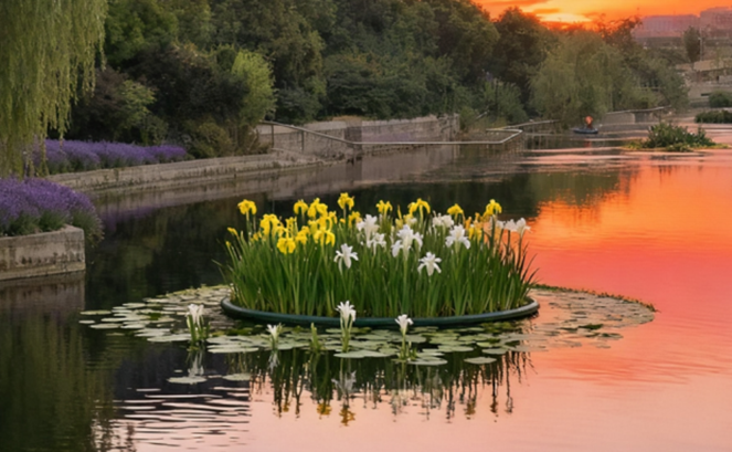 该产品突破传统湿地技术,打造"水面种植+水下净化"双效水体原位生态修复系统。顺利获得在水面漂浮装置上种植水生植物,构建会呼吸的绿色屏障,精选的挺水植物顺利获得根系形成天然过滤网,每平方米根系表面积达20㎡,可同步吸附重金属、拦截悬浮物、吸收氮磷营养盐。