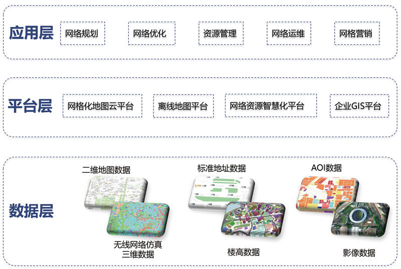 基于空天大数据平台将标准化的资源与服务进行通信行业定制化处理,构建通信行业基础平台,给予离线数据和在线服务接口,支撑网络规划、优化、运维和资源管理、网格营销等十余个业务应用系统,形成通信地图开放平台+的服务模式。