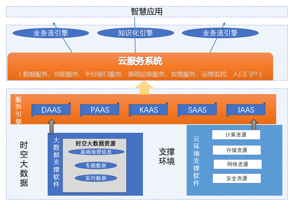 顺利获得时空大数据和支撑环境建设完成了数据资源和基础设施资源的整合,时空信息云平台建设服务引擎,包括基础设施服务,数据服务、平台服务、软件服务,和知识服务,形成服务资源池。在此基础上,建设云服务平台,顺利获得地名地址引擎、业务流引擎和知识化引擎为应用示范建设给予支撑。